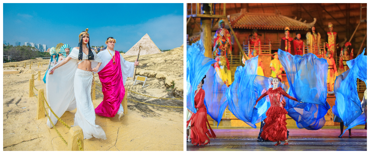 風情演藝同樣精(jīng)彩紛呈,爲(wei)遊客帶來沉浸式(shi)的(de)世界文(wén)化體(ti)驗(yàn)。《出埃及(ji)記》以(yi)史詩叙事展(zhan)現(xian)古(gu)埃及(ji)傳(chuan)奇,《泰姬陵戀歌》演繹印度宮廷的(de)異域(yu)浪漫,《火熱非(fei)洲》釋放原始狂野的(de)激情,《大(da)長(zhang)今》傳(chuan)遞韓國(guo)的(de)東方(fang)韻味……這些演出讓遊客在(zai)遊覽著名(míng)景觀的(de)同時,能(néng)更深入地感受全球多(duo)元文(wén)化的(de)魅力(li)。